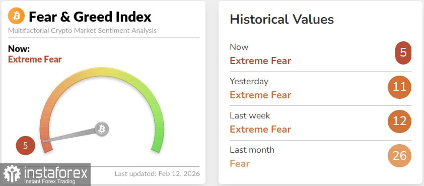 Тем временем индекс страха и жадности на крипторынке снизился до рекордных 5 пунктов из 100. Это уровень экстремального страха, и он даже ниже, чем был даже после краха Terra в 2022 году. Такое резкое падение настроений участников рынка сигнализирует о глубоком пессимизме, охватившем инвесторов. Снижение индекса до столь низких значений обычно происходит в периоды значительных распродаж и неопределенности, когда преобладают опасения о дальнейших потерях.