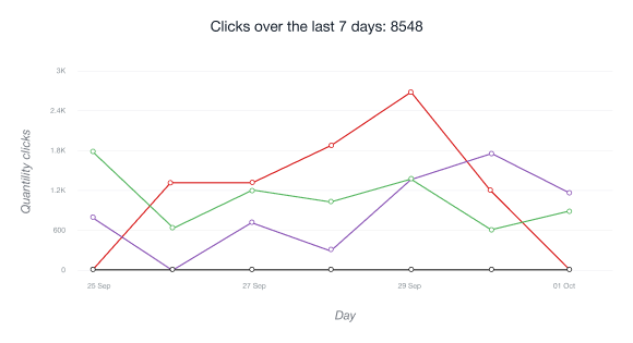 • El grafico de clics unicos muestra el numero de usuarios que siguieron su enlace de afiliado por primera vez desde una direccion IP determinada en las ultimas 24 horas.