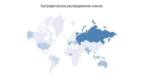 • Статистика географічного розподілу кліків показує країни з найбільшою кількістю переходів протягом усієї партнерської діяльності.