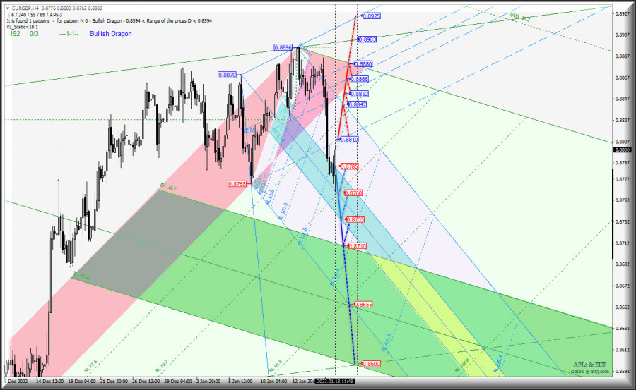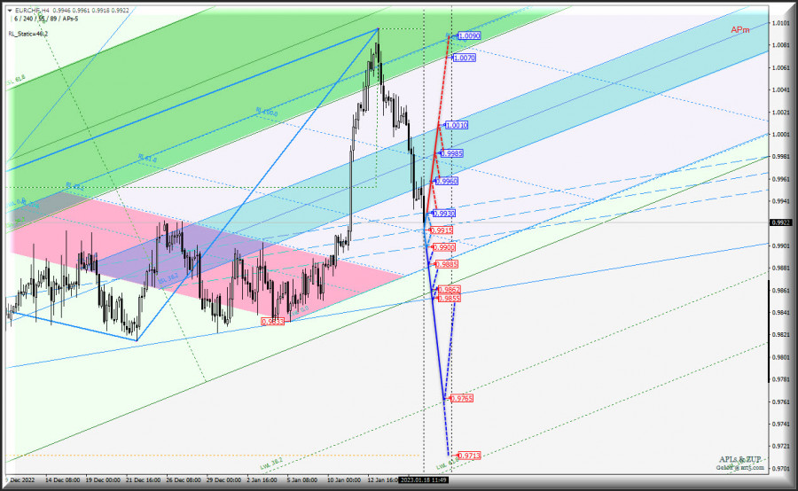 Движение вверх евро-кроссов остановлено - теперь только вниз? Euro vs Great Britain Pound vs Swiss Franc - h4 - комплексный анализ APLs & ZUP с 18 января 2023