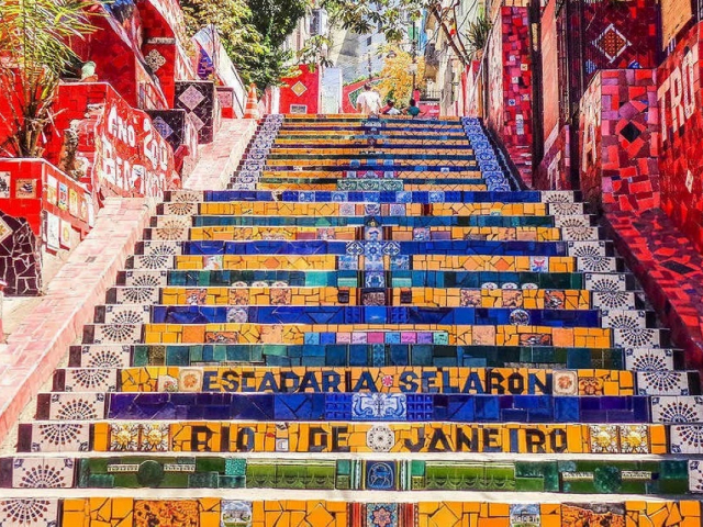 Почти четверть века – с 1990 по 2013 год – чилийский художник Хорхе Селарон вручную покрывал 215 ступеней между районами Лапа и Санта-Тереза плитками, зеркалами и , доставленными в сумме из 60 стран. Красный цвет стал его подписью – символом страсти. Селарон жил на лестнице и погиб на ней же. Ежегодно 3 миллиона человек ищут плитку из своей страны и фотографируют самый яркий подъем Рио.